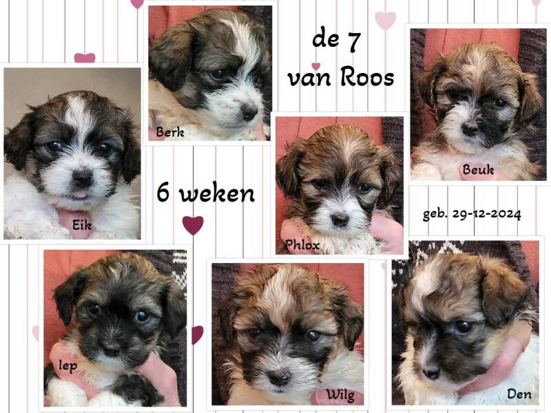 Het is altijd leuk als andere fokkers vertrouwen hebben in jouw hondjes. Wie hebben 4 teefjes en 1 reutje onze leuke lieve Loekie. Loekie heeft in oktober een super leuk teefje gedekt er werden 10 pups geboren maar door de moeilijke bevalling hebben slechts 7 pups het overleefd. 6 reutjes en 1 teefje. Deze pups doen het super goed en zijn nu 6 weken oud. Ik krijg leuke updates van de pups maar vandaag kreeg ik wel een hele leuke foto van de pups die ik graag hier wil delen.