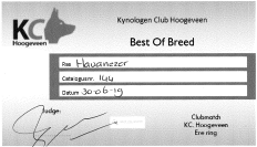 Voor ons moet het deelnemen aan een show leuk zijn voor onze honden en voor ons. Wij ontzeggen onze honden niets omdat we ook graag naar show willen, zo gaan ze met ons de bos in, mogen vies worden en zwemmen. Veel dingen die voor de vacht van een Havanezer niet echt heel erg goed zijn. Voor ons in mee doen belangrijker dan winnen.