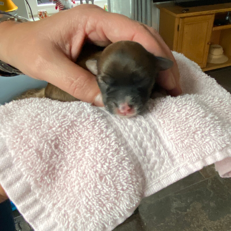 Ja daar zijn ze dan, de pups van Lucky en Rico. Na een lange nacht werd vanmorgen om 7.07 uur de eerste pup geboren. Binnen de 1.5 uur stond de teller op 6. Hierna was het even rustig maar om half 11 werd dan toch pup nr. 7 geboren.